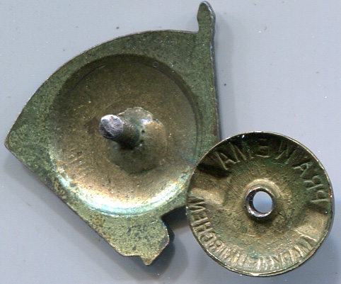 Знак изготовлен из ЖЕЛЕЗА, магнитится. На реверсе следы бронзирования. Без клейма изготовителя. 23х19 мм.