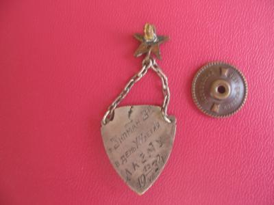 Вот еще два знака КИМ таких вроде не показывали, только вот крепление булавочное смущает. И что означают буквы МГ на реверсе одного из них?