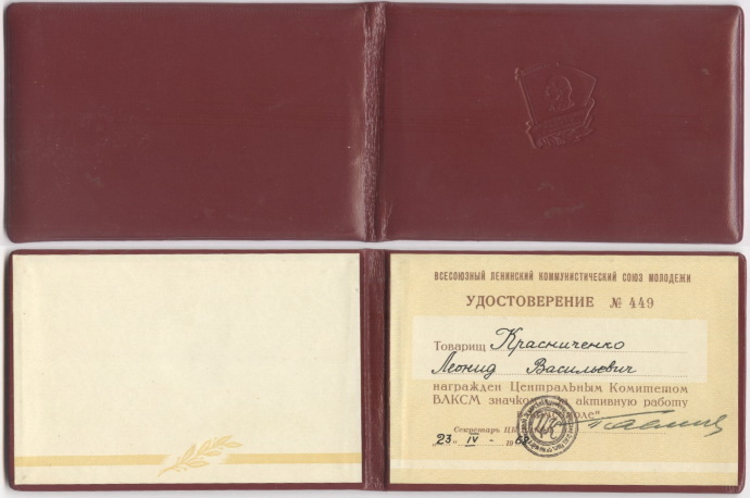 Re: Знак ЦК ВЛКСМ "За активную работу в Комсомоле"