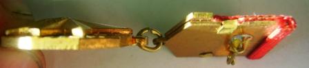 Я взял немного другой ракурс. На подвеске более отчетливо видны выпуклости от штифтов накладки (кто-то в этом сомневался). Кроме того, на колодке виден выступающий край напаянной надписи ВЛКСМ.
