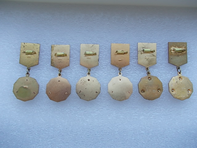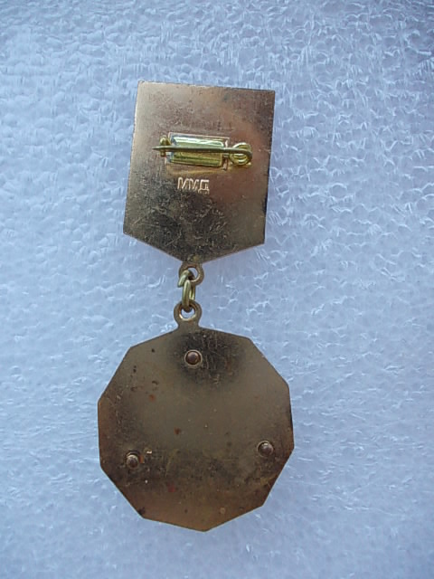 Встретился знак подобный Вашему, только на нём штифты креплений накладки на колодке и звезды на подвеске хорошо видны.