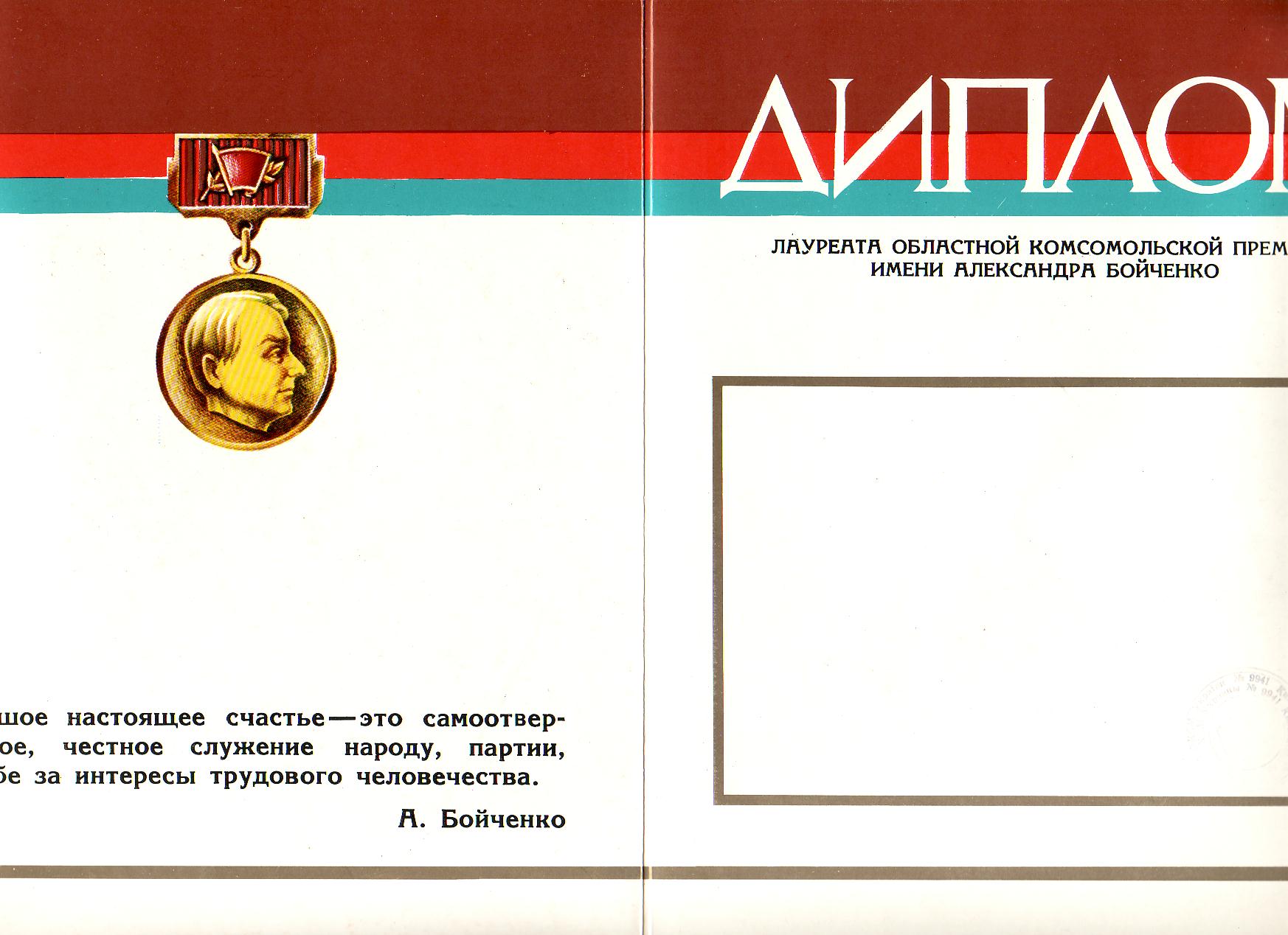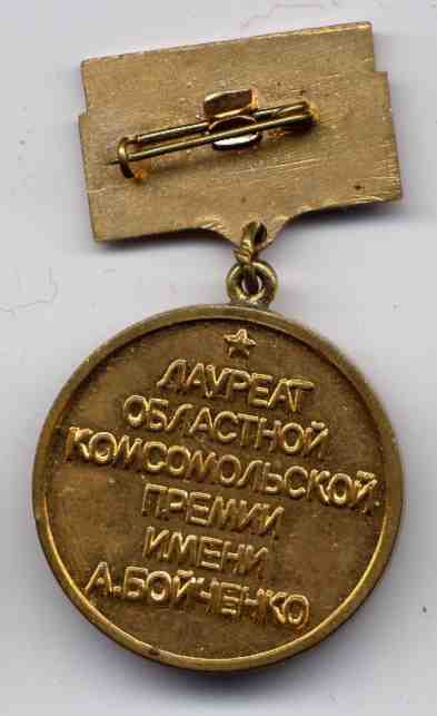 Интересно, что существовала и киевская городская комсомольская премия имени А.Бойченко. Привожу изображение знака из сети