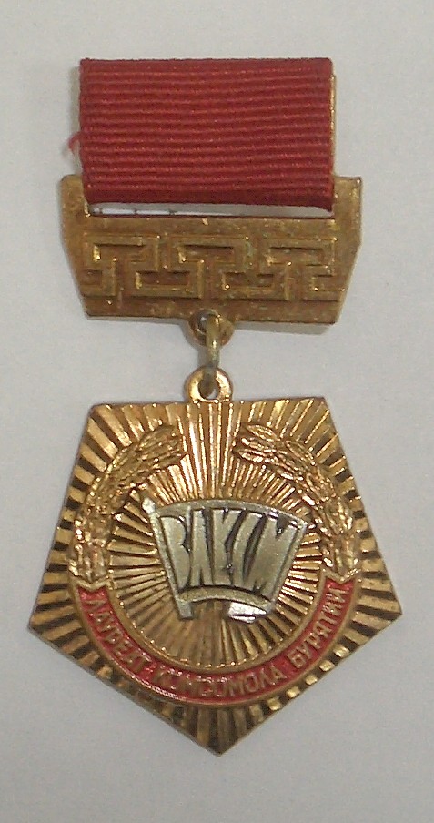 Не знаю на нем сзади какой-то номер процарапан, но очень неразборчиво. И на значке нет слова Ленинский, а я думаю что название премии не стали бы сокращать.Vjacheslav писал(а) :Это какой-то из горнообогатительных комбинатов. Только, я думаю, что знак посвящен присуждению комбинату Премии Ленинского комсомола, а не наоборот.laz писал(а) :Лауреат премии комсомола БГОКа (что такое БГОК) ?