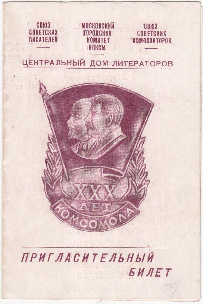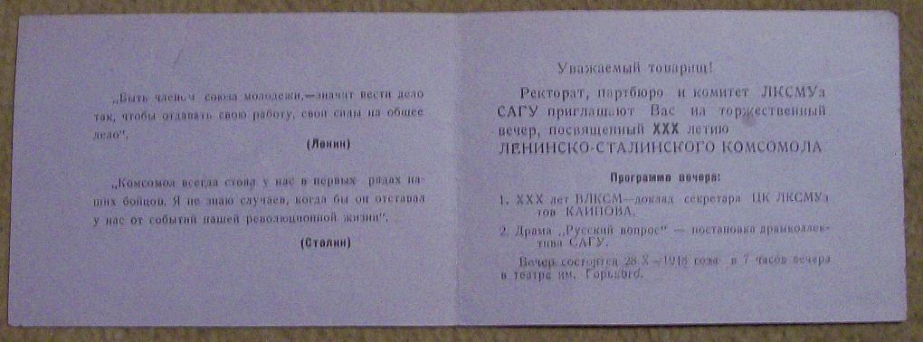 А вот ПРИГЛАСИТЕЛЬНЫЙ БИЛЕТ из Узбекской ССР.