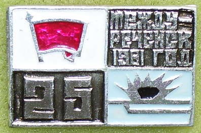 Ваши предположения об ударной комсомольской стройке вероятнее всего, есть ведь значки города Амурска с комсомольским значком.АДВ писал(а) :Значок «25 лет / Междуреченск 1981 год». Изображен значок ВЛКСМ или флаг? Предполагаю что это ударная комсомольская стройка. Прошу подтвердить или поправить.