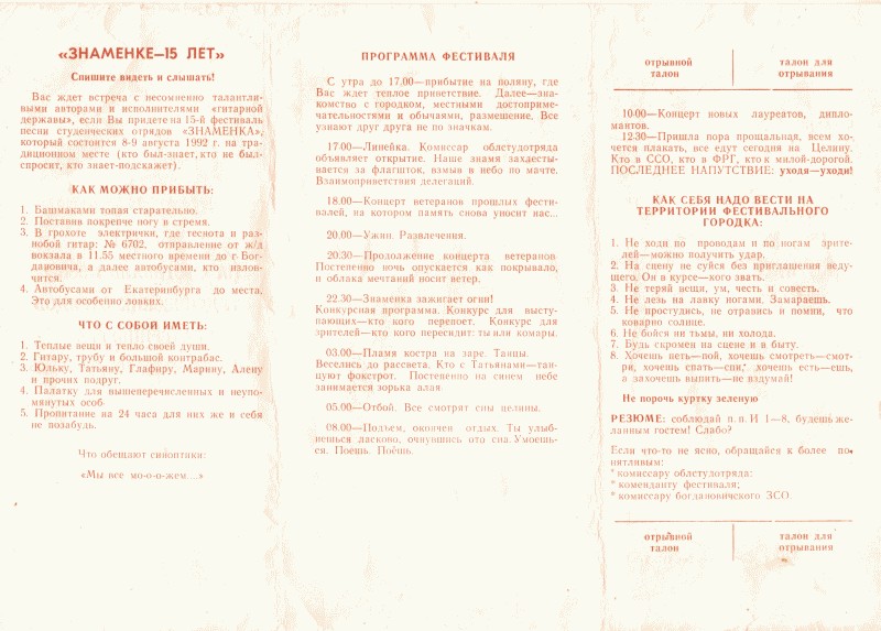 Обнаружил это Приглашение у себя в архиве (наш отряд - ССО МАИ-МЭИ "Коммунар" из Москвы, в 1992 году работал в Свердловской области и участвовал :accordionist: в фестивале).