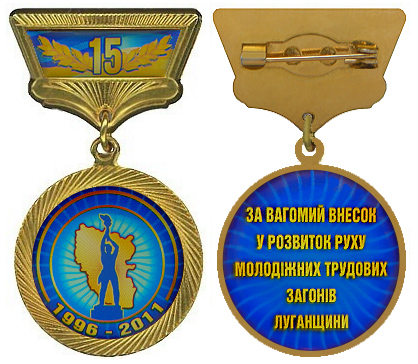 знак "За весомый вклад в развитие движения молодежных трудовых отрядов Луганщины", учрежденный к 15-летию возрождения студотрядовского движения в Луганской области