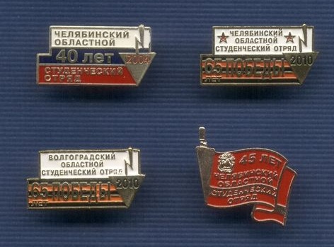 По челябинской колодке - на днях выложу скан. Что касается двух нижних знаков: первый - просто строительная организация, а второй - слет - возможно, включал и стройотрядовцев, но уверен, что не только их. К комсомолу второй знак оносится точно.