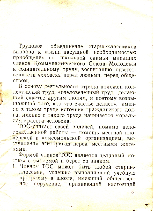 В нём сказано " Формой членов ТОС является целинный костюм с эмблемой и берет со ЗНАКОМ"