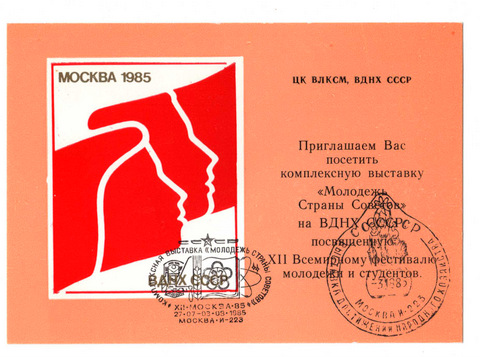 Комплексная Всесоюзная выставка «Молодёжь страны советов» на ВДНХ, приуроченная к XII Всемирному фестивалю молодёжи и студентов в Москве (1985).