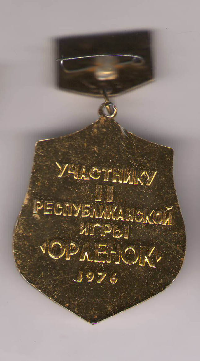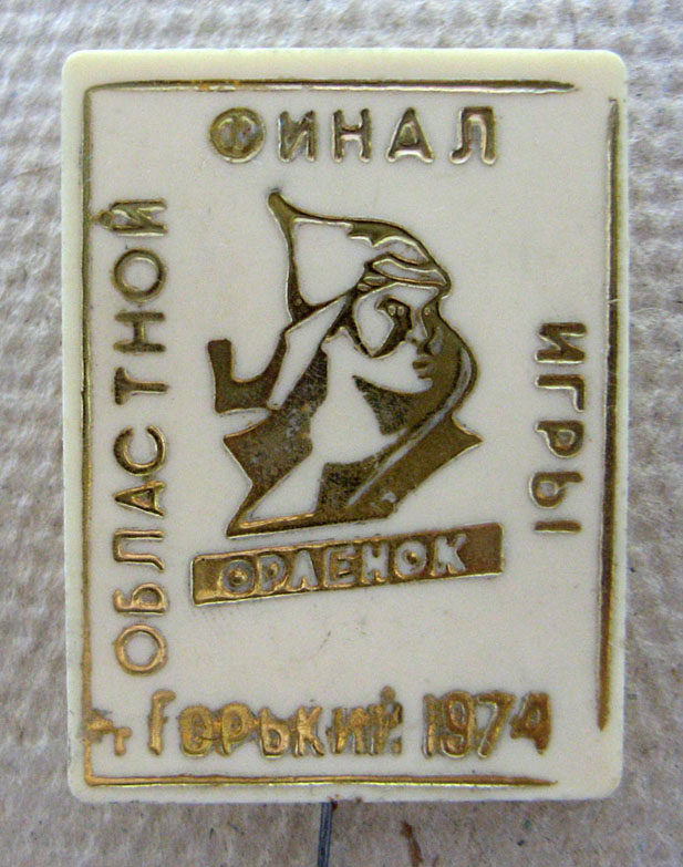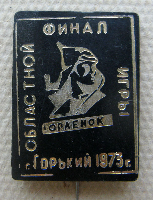Вряд ли это значок военно-спортивной игры. Больше похоже на проводившиеся на местах "слеты Артековцев и Орлят". Т.е. ранее побывавших в этих лагерях. Где-то проводились по каждому лагерю отдельно, где-то вместе. Всероссийский "Орленок" всё же лагерь актива, поэтому "орлята" чаще инициировали такие сборы.