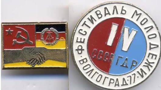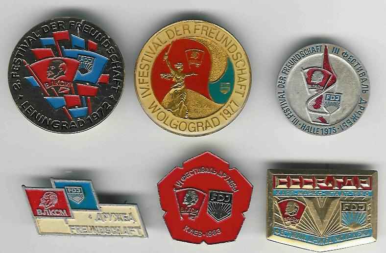 С целью пропоганды идей марксизма-ленинизма проводилось большое количество фестивалей дружбы (форумов, лагеря дружбы и т.д.). Фестивали проводились между ВЛКСМ и молодежными организациями других стран. В период с 1945-1990 год было проведено более 110 таких встреч. Практически каждая такая встреча сопроваждалась выпуском значков.