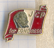 разобрался, что это знак JUVENTUD COMUNISTA DEL PERÚ или Juventud Comunista Peruana. Т.е. один из значков Перуанской коммунистической молодежи.