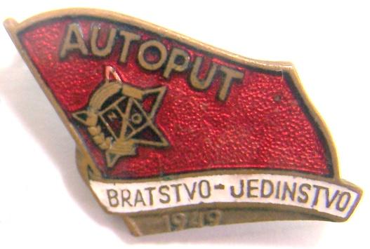 Вариант знака "Автомагистраль Братство-Единство 1949" с написанием текста на сербском языке .