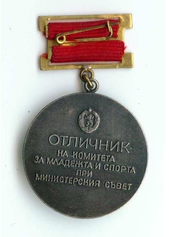 Знак "Отличник" Комитета по делам молодежи и спорта при Совете министров Народной Республики Болгария.