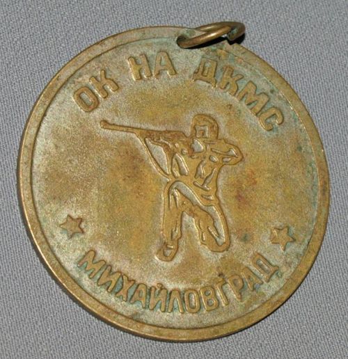Наградная медаль Окружного комитета Димитровского коммунистического молодежного союза г. Михайловграда за успешные выступления на соревнованиях по стрелковому спорту, являвшихся частью доармейской подготовки болгарской молодежи.