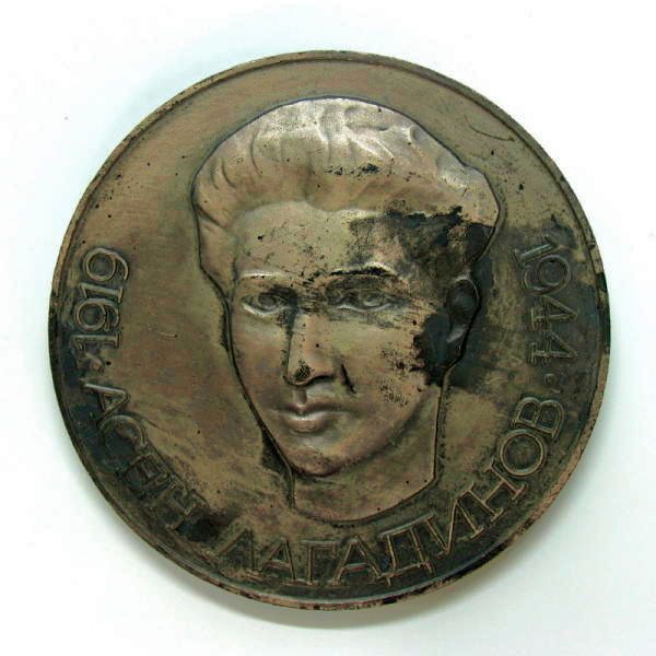 Медаль муниципального комитета ДКМС города Разлог, имени героя - партизана Асена Лагадинова (1919 - 1944). Диаметр 65 мм.