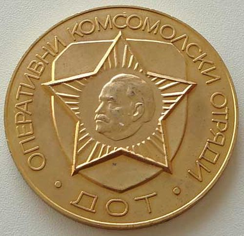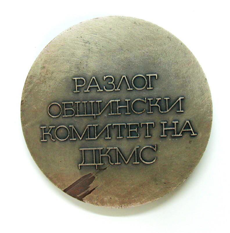 Медаль Республиканского комитета комсомола Министерства внутренних дел Болгарии "За активную комсомольскую деятельность". Диаметр 63 мм.