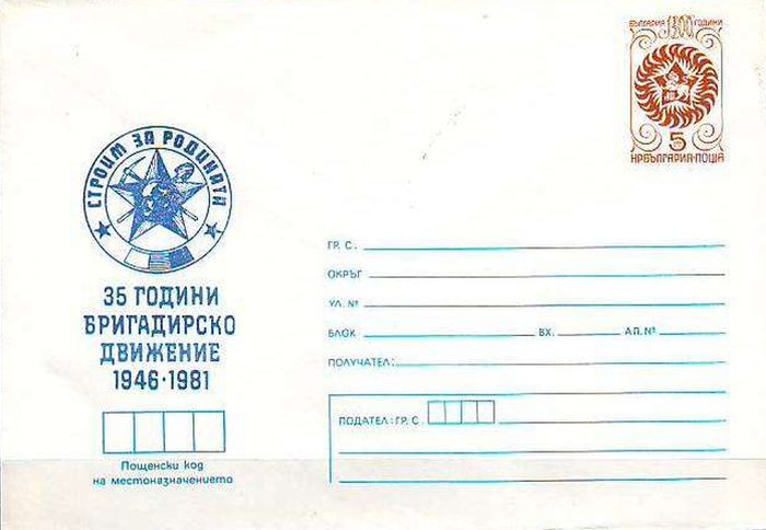 Почтовая марка выпущенная 13 октября 1971 года в честь 25-летия бригадного движения. Художник В. Томов. Тираж 5000000 шт.