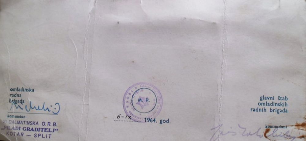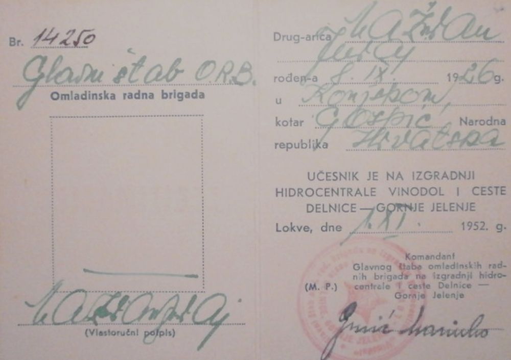 Документ участника строительства к сему знаку.nasa_astronaut писал(а) :Знак, выпущенный для членов организации Народная молодежь Югославии, принимавших участие в строительстве ГЭС Винодола, точнее - его этапа 1952 года. Крепление - игла.nasa_astronaut писал(а) :... югославская молодежь привлекалась на строительство ГЭС Винодола неравномерно и поэтапно в период 1950 - 1954 годов (активно, начиная с 1952 года)...