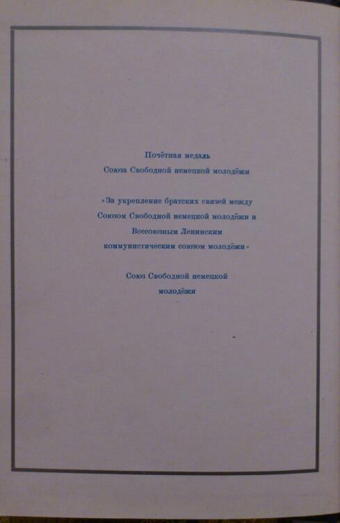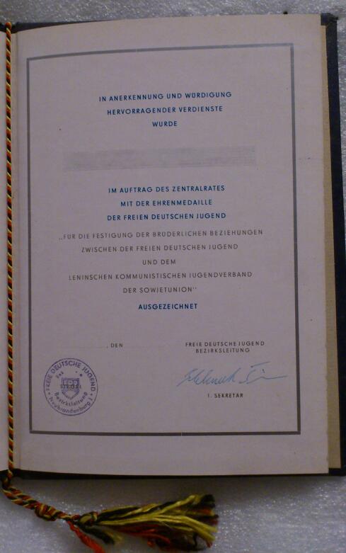 Период выпуска и награждений - первая половина 1950-ых годов. Вручалась комсомольским функционерам ГДР за активную