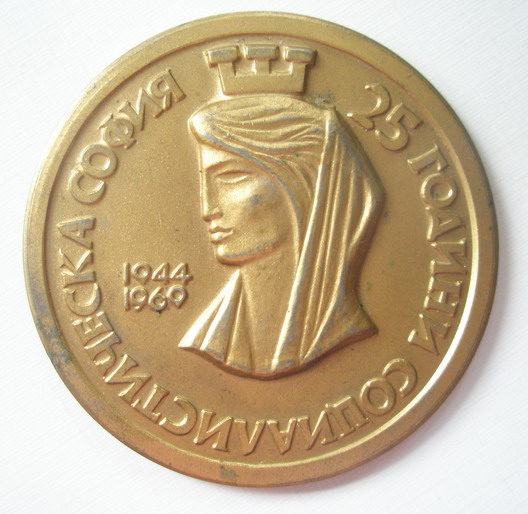 Медаль к 25-летию.nasa_astronaut писал(а) :Изображение святой Софии использовалось так же и на спортивных медалях.nasa_astronaut писал(а) :Та же самая религиозная символика (святая София) была использована 5 лет спустя, в годовщину 30-летия социалистической Софии (1944 - 1974), в медали ЦК ДКМС "За активную комсомольскую деятельность". Диаметр 120 мм.nasa_astronaut писал(а) : знак 1969 года в честь 25-летия г. Софии. Надпись на аверсе подвески - "25 лет социалистической Софии". Колодка, кстати, абсолютно "родная" (в подтверждение прилагаю скан имеющегося знака).
