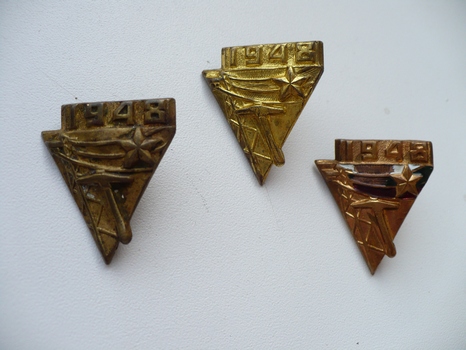 Как мне кажется, варианты металла. Последний с эмалевым покрытием знамени, правда, слабо сохранившимся.nasa_astronaut писал(а) :Тот же знак на агитплакате с надписью: "Бригада место не только для героической работы, но и массовых занятий спортом".nasa_astronaut писал(а) :Знак с официальной эмблемой движения болгарских молодежных бригад 1948 г. + документ ДСНМ с аналогичным знаком, но меньшего размера.