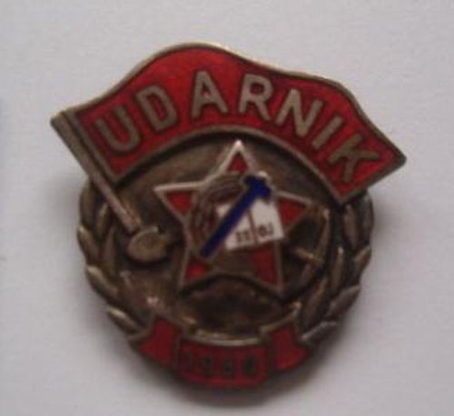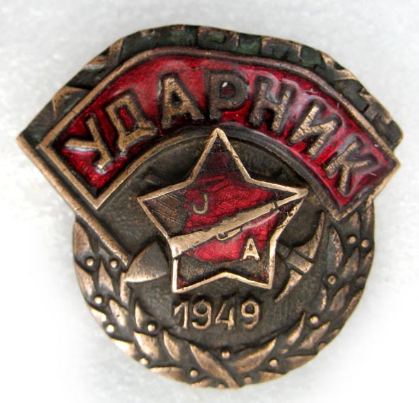 Армейский вариант знака "Ударник" (широко представленного на страницах этой темы). Именно показанным Вами знаком награждались военнослужащие армии Югославии, ударники строительства автомагистрали (аутопут) "Братство-Единство", соединяющей Белград с Загребом. Югославские комсомольцы были подключены к строительству сей автомагистрали с 1 апреля 1948 года, т.е. спустя год после фактического начала работ. В 1949 году автомагистраль получила статус высшего приоритета, повлекшее за собой привлечение все большего числа "добровольцев" от комсомола к её строительству. За период до 30 июля 1950 года по решению ЦК Компартии Югославии было командировано на строительство 250000 "гражданских" комсомольцев, 80000 комсомольцев армии (многие из которых демобилизовались прямо со строительства) и 14500 инженеров, техников и прочих квалифицированных рабочих.