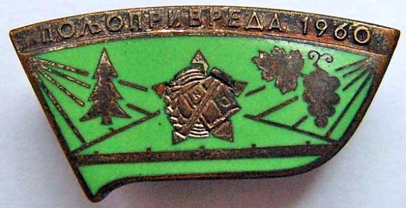 Это знак Молодежной трудовой акции "Сельское хозяйство 60". Помимо комсомольских бригад, участвовавших в строительстве железнодорожных линий, автомагистралей и обустройстве городов, существовали и сельскохозяйственные комсомольские бригады суммарным числом превосходящие строительные. Комсомольцы, входящие в состав этих бригадах, были заняты в основном в области лесовосстановления и на сельхоз. работах.