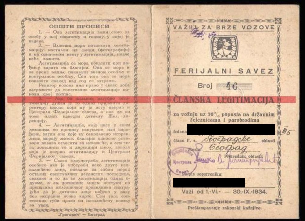 Членский документ, указанной в цитате организации 1932 г., дающий право его владельцу путешествовать с 50% скидкой, используя поезда государственной железной дороги а так же еще и пароходы.
