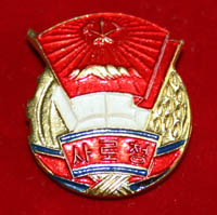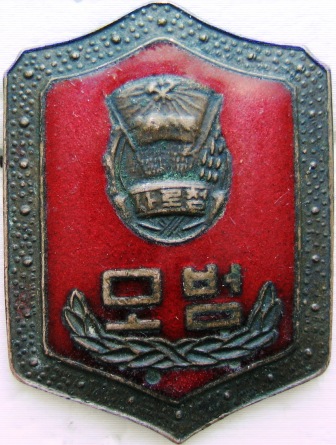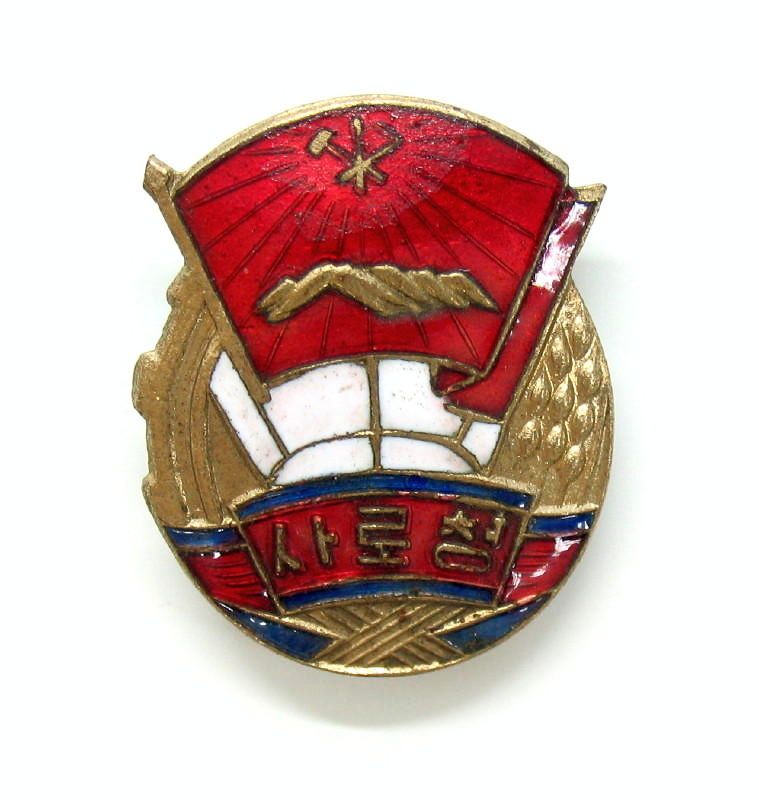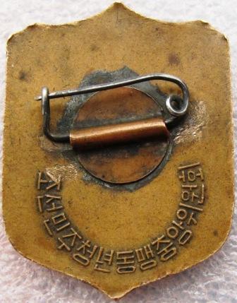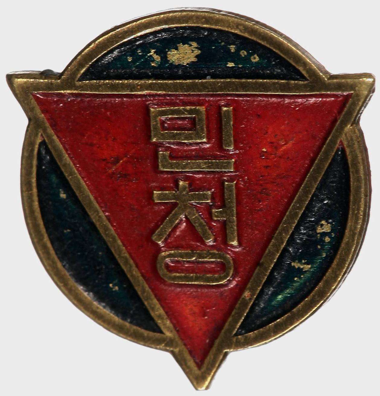 Это более старый вариант "комсомольского" значка КНДР - знак Демократического союза молодежи Кореи - 조선민청. Такое название организация носила до 1964 года, после чего её переименовали в Союз социалистической трудовой молодежи Кореи - 사로청 (предыдущие знаки в этой теме). А с 1996 года она называется Кимирсеновский социалистической союз молодежи - 청년동맹.А вот такой вариант еще показан не был
