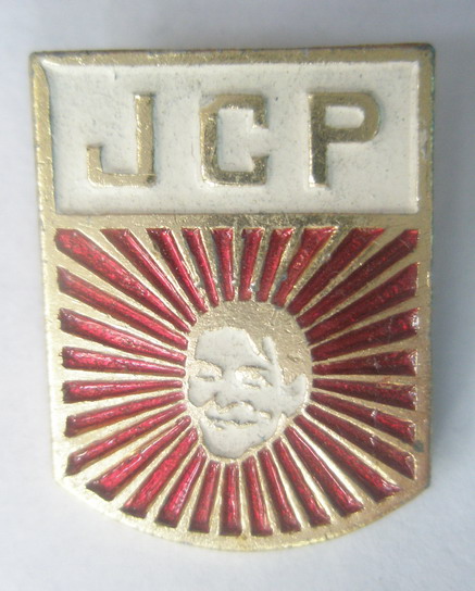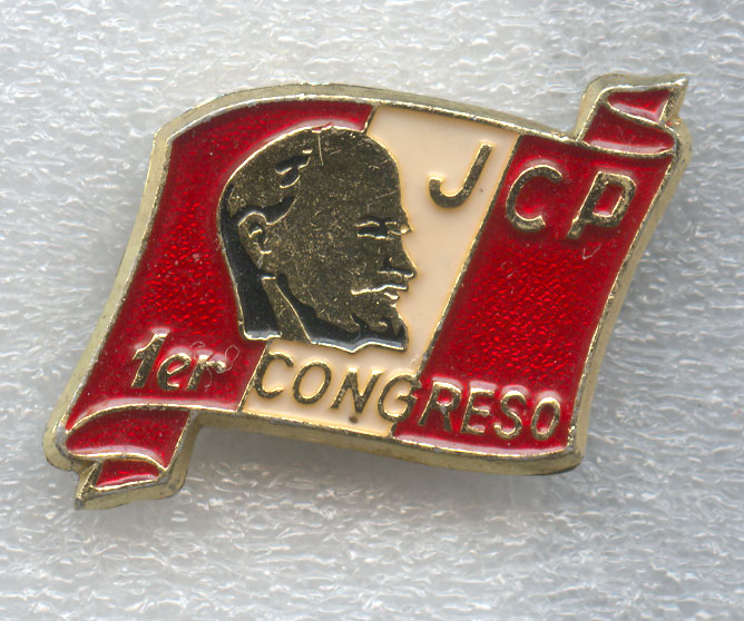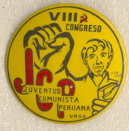 разобрался, что это знак JUVENTUD COMUNISTA DEL PERÚ или Juventud Comunista Peruana. Т.е. один из значков Перуанской коммунистической молодежи.