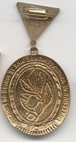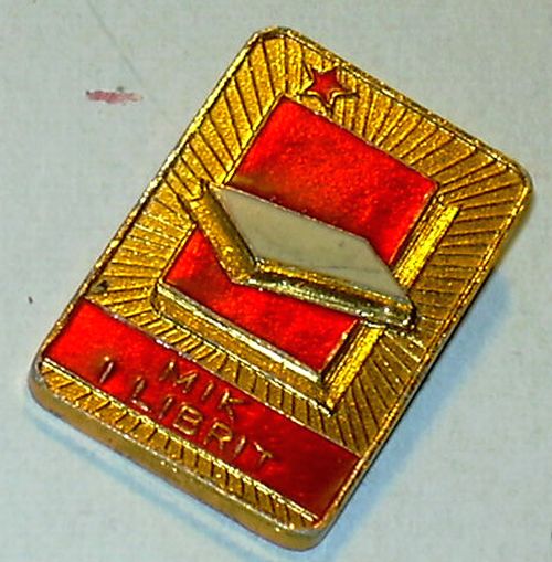 Знак Союза трудовой молодежи Албании. Отличается от показанных ранее и изображений в литературе и на документах тем, что на знаке "звезда" пересекает "колос".