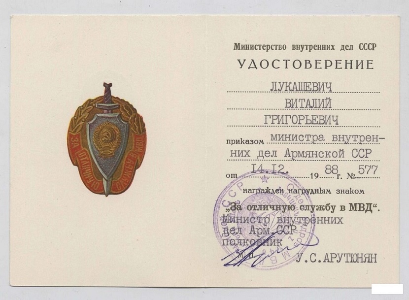 С июня 1988 – май 1990 г. - министр внутренних дел Армении;