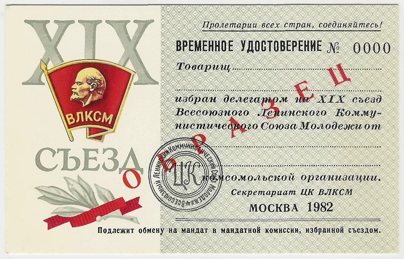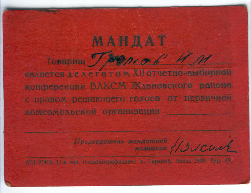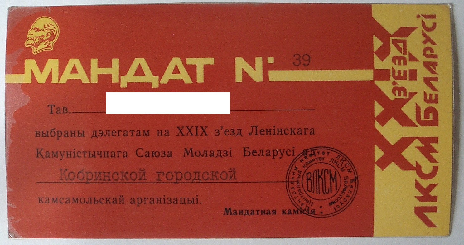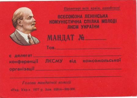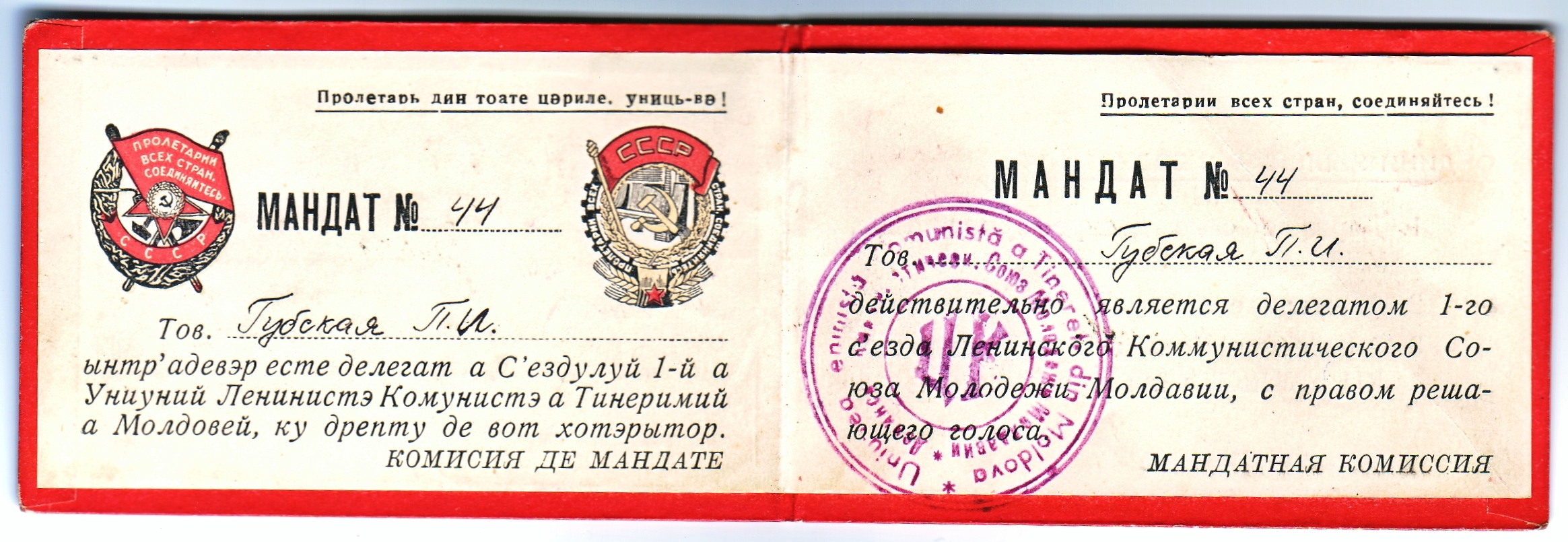 Мандат делегата 1-го съезда ЛКСМ Молдавии выдан после присоединение Бессарабии и образования Молдавской ССР.