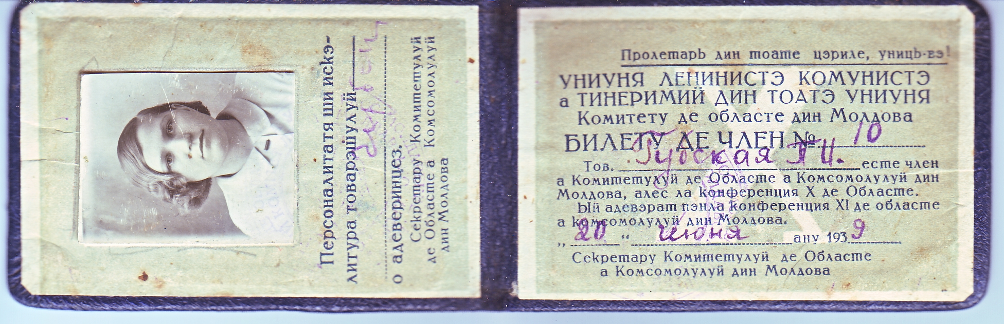 Удостоверение члена областного комитета комсомола было выдано , когда Молдавия существовала как АССР в составе УкрССР.