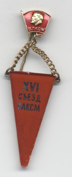 Вот ещё один 16 съезд ВЛКСМ с "шахтерской лампой". Интересно, кто-нибудь подскажет каков статус таких значков?