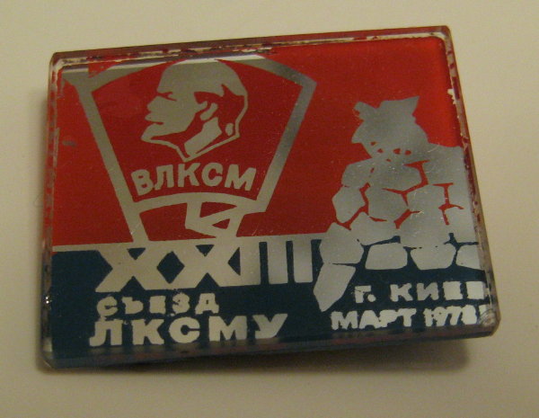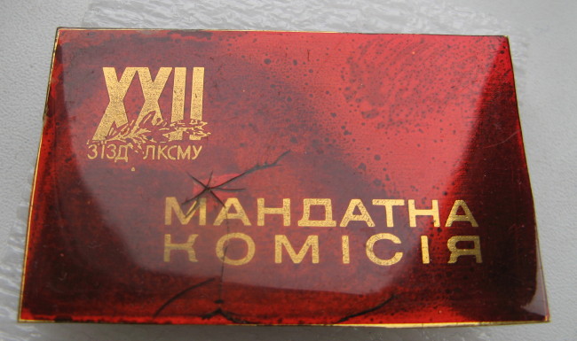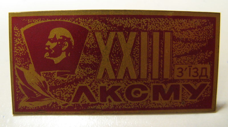 Нашел в интернете скан знака ЦК ЛКСМУ "Делегат 22 съезда ЛКСМУ". Интересно, кому-нибудь попадался знак (если он существует) последнего съезда 26 ЛКСМУ? И существуют ли знаки съездов ранее 20?