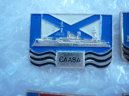 Из серии " КОРАБЛИ ГЕРОИ" -серия из 12 значков и (головного жетона-три флага)