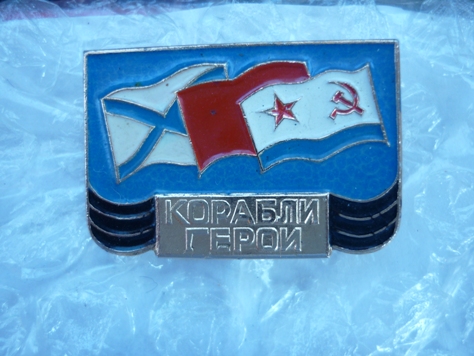 Из серии " КОРАБЛИ ГЕРОИ" -серия из 12 значков и (головного жетона-три флага).