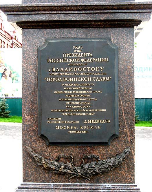 Комплекс «Знака воинской славы»-города ВЛАДИВОСТОКА.