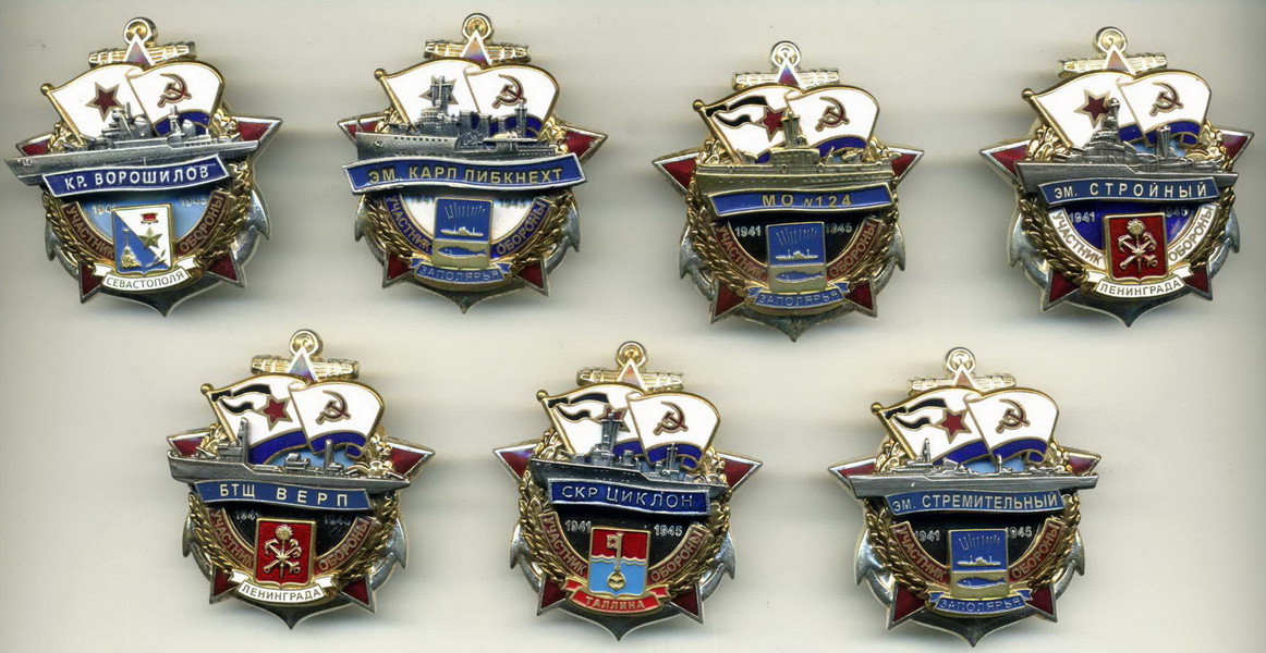 Но различие знаков - не только по городам, но и по Флагу (с траурной лентой и без неё), проектам кораблей, цвету эмалей...