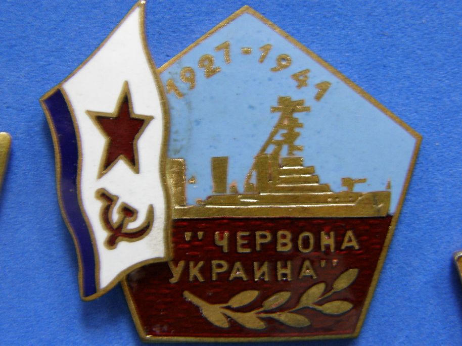Это знак БПК пр.61, который с 30.06.1970 г. носил гвардейский Военно-морской флаг, унаследованный от одноименного крейсера Черноморского Флота, который был удостоен гвардейского звания 18 июня 1942 года.