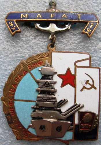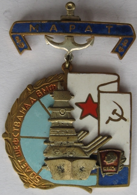 К 50 летнему юбилею шефства комсомола над ВМФ СССР- в 1972 году в г.Таллин были изготовлены памятные юбилейные знаки линкора- "МАРАТ/ПЕТРОПАВЛОВСК" 1922-1972гг.