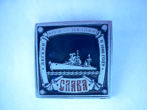 Значок и вкладыш Крейсер "Слава / Молотов" --из Серии закатных значков "Оружие Победы"