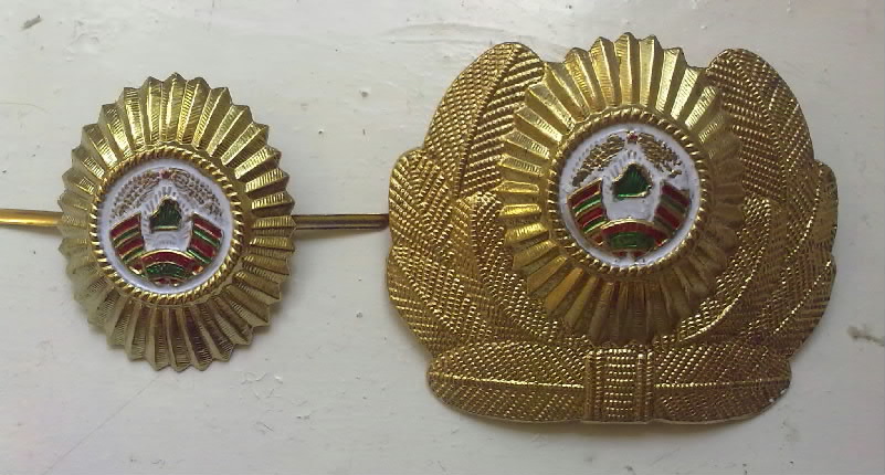 У Президента -Верх/Гл/командующего- погон маршала ВС РБ,по Конституции Президент-Главком ВС,рядом генерал,у которого офицерская кокарда в обрамлении золотого шитья,у А.Г. дизайн маршальской фуражки немного отличается от генеральской.Его форма эксклюзивна,потому что она в единственном экземпляре в стране,где нет больше маршаловSubwhiskey писал(а) :Вот интересная фотка. На фуражке у Лукашенко металлическая кокарда в центре шития не для офицеров а для рядового и серж.состава ( кстати видно место именно для другого образца ОФИЦЕРСКОЙ кокарды), но в то же время у генерала стоящего рядом такая кокарда к ак положена. И вопрос ,какое звание на погонах у Лукашенко ? Есть ли какая-либо ссылка на воинские звания с указанием такого образца погона? Является ли это погон означающий воинское звание или он должностной?