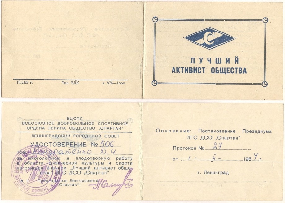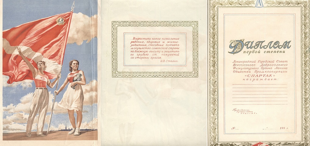 Диплом первой степени Ленинградского совета ВДФО Спартак