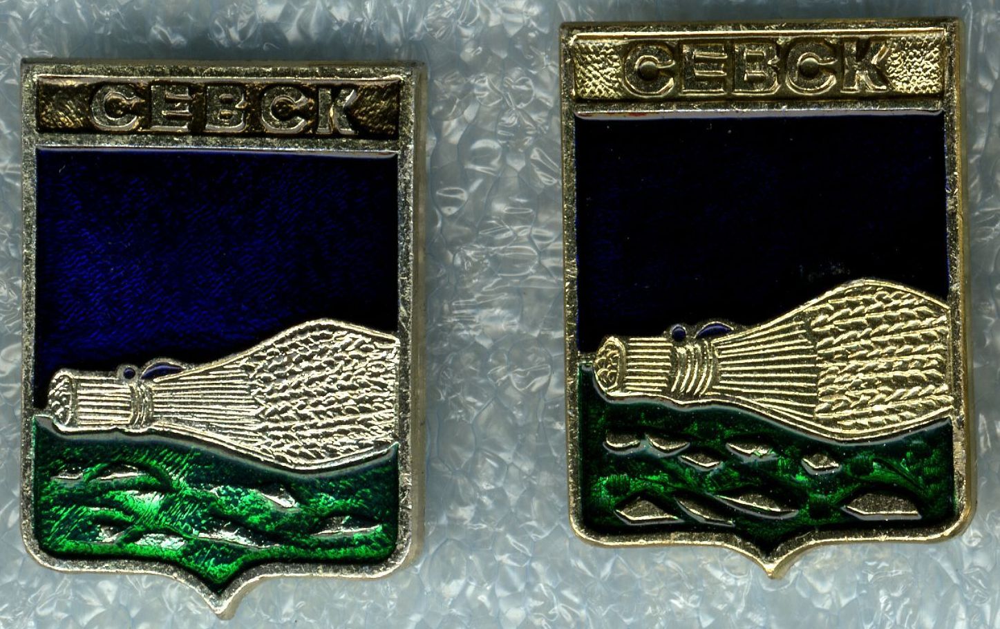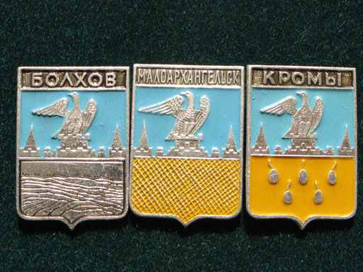 Гербы населённых пунктов на значках.