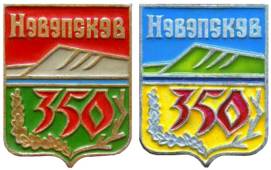 350-летие Новопскова (1988 год). На правом значке, вероятно самопальная раскраска.