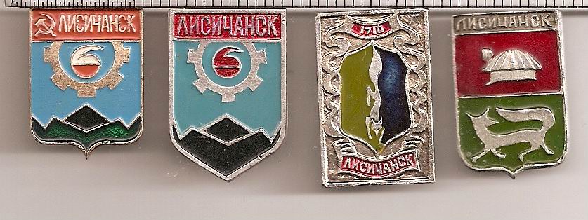 Был еще значок герба Лисичанска, такой же как первые два с Вашего скана, только с клеймом Республиканского производственного творческо-экспериментального комбината Украинского общества охраны памятников истории и культуры.